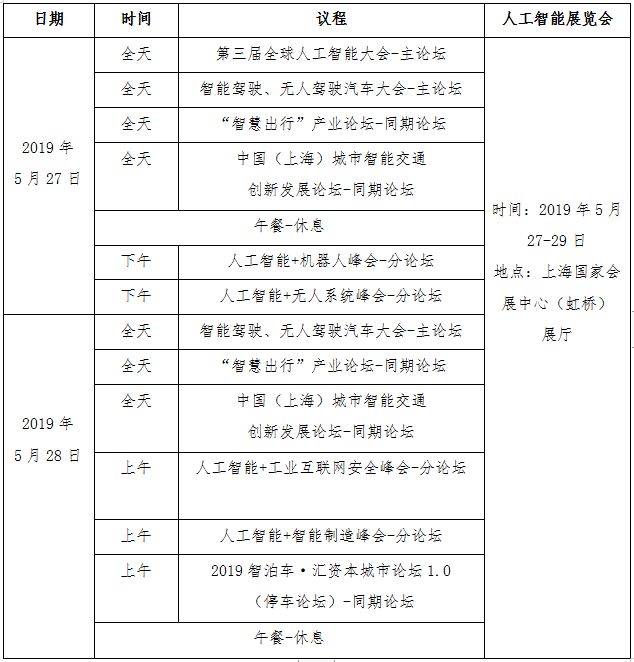 Global-Ai 2019第三届全球人工智能大会由中国自动化学会、中国人工智能产业发展联盟主办,恒兴国际会展(北京)有限公司承办,多家单位协办及支持,大会将于2019年5月27-29日在上海·国家会展中心隆重举办,届时将展示人工智能、智能汽车、智能交通等相关新技术新产品,同期大会将围绕人工智能技术、智能驾驶、智能机器人、智能制造、工业互联网、无人系统等多个主题展开技术交流会议来加强行业间的合作,强壮我国人工智能产业,也望通过本次大会为我国人工智能产业的发展做出应有的贡献。