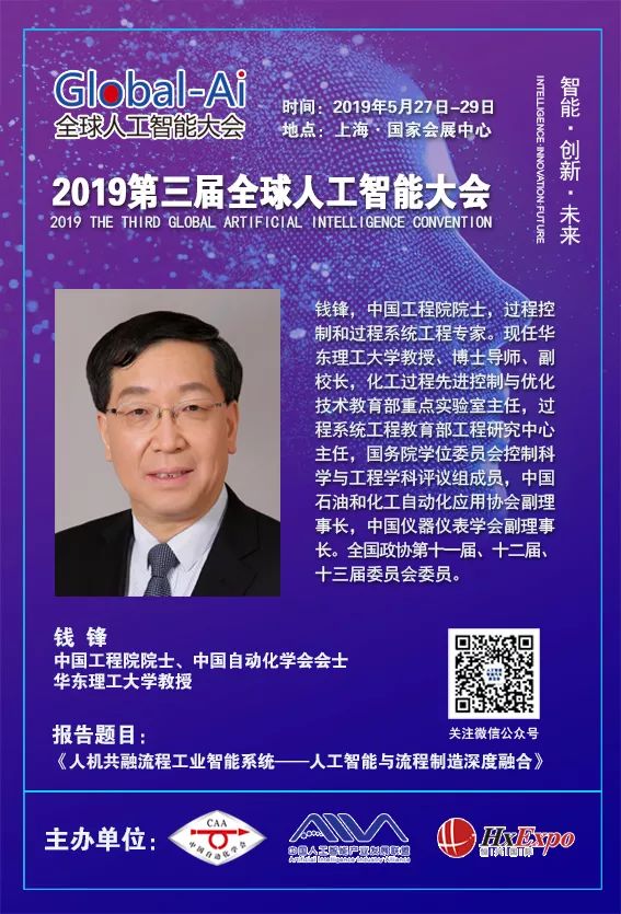 钱 锋,中国工程院院士、中国自动化学会会士、华东理工大学教授