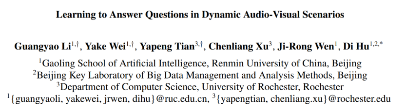 本项研究由中国人民大学高瓴人工智能学院主导,与美国罗彻斯特大学合作完成,通讯作者为 GeWu 实验室胡迪助理教授,主要内容由 GeWu 实验室博士生李光耀负责。