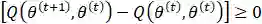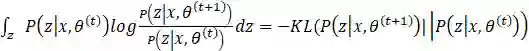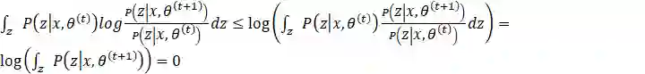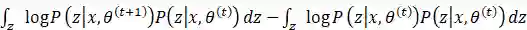 为了证明,只需证明上式右端为非负的。由于在EM算法里,在M步会对Q函数求极大,则
