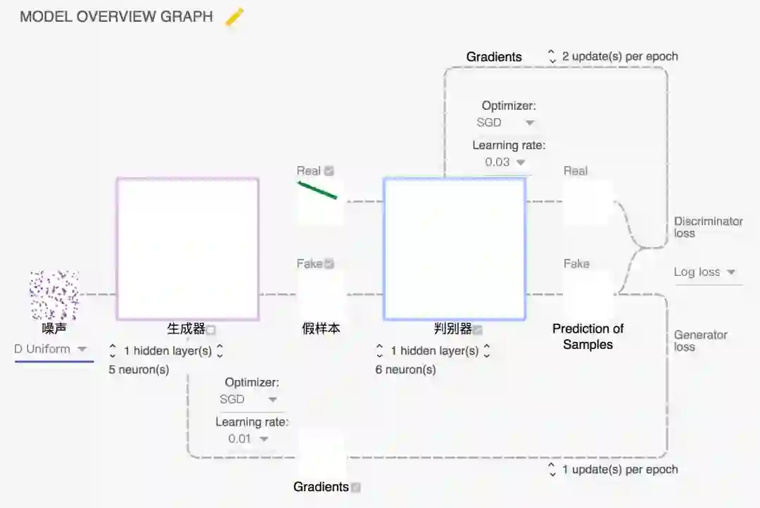 为此,我们可以细致的调节参数,GANLab 可以自由设置参数: