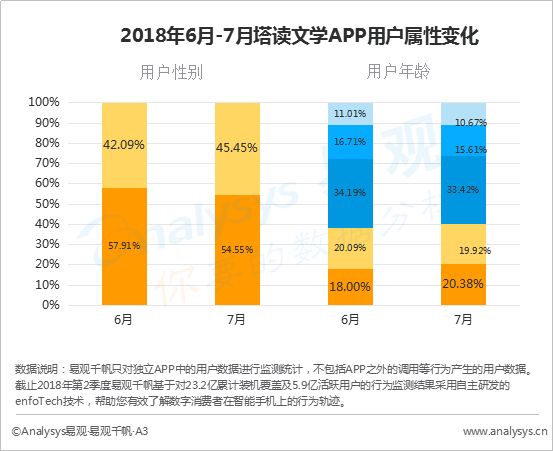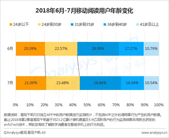 6月至7月,移动阅读市场女性用户有小幅提升,同时年轻用户占比也有所增加。而这一现象与暑期女性向作品热播不无关系。