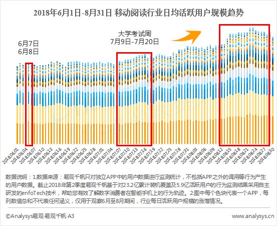 暑假开始后,用户规模快速拉升,且活跃用户规模在8月下旬达到阶段内顶峰。此时阅读平台以活动运营和产品运营为主来拉新促活,同时保持用户粘性。比如:塔读文学APP于8月上线5.1新版本,丰富了用户标签以达到为用户推送精准内容的目的,同时推出了新用户免费阅读21天的活动和一元阅读的活动,降低了新用户的体验成本,取得较高的用户增量。