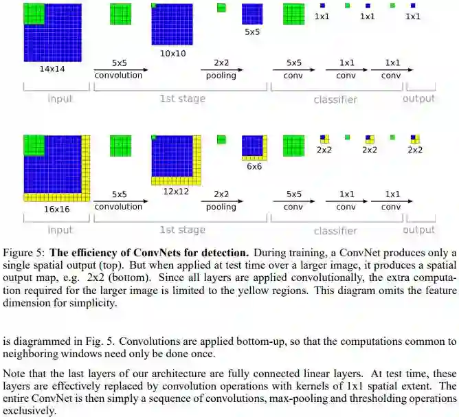 其实VGG的作者把训练阶段的全连接替换为卷积是参考了OverFeat的工作,如下图是OverFeat将全连接换成卷积后,带来可以处理任意分辨率(在整张图)上计算卷积,而无需对原图resize的优势。