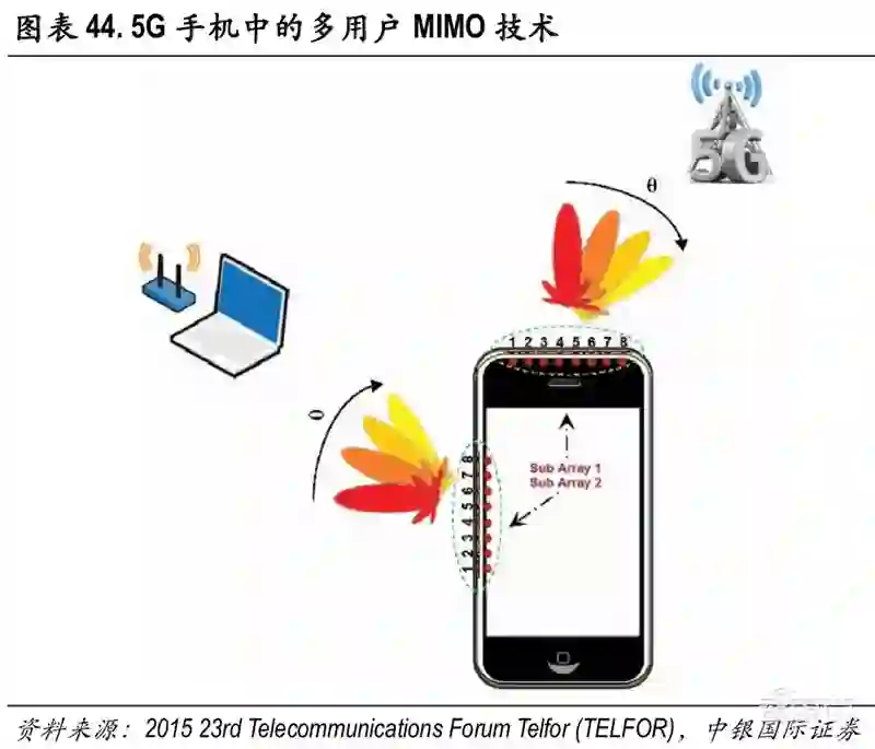 5G的主要通信技术有Massive MIMO、载波聚合、波束赋形等,配合这些技术,终端天线也将发生一系列的变化。例如,MIMO技术的应用将会明显增加天线数量。