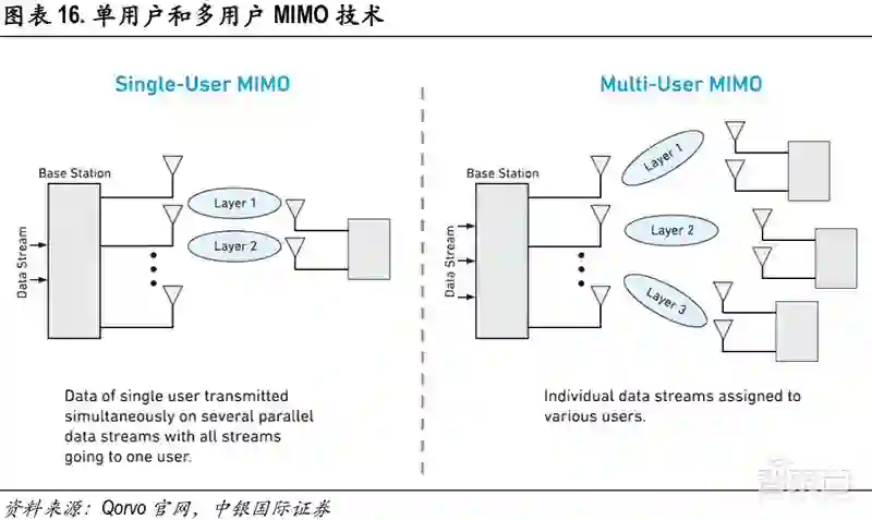 1)3G时代使用了单用户MIMO技术,它从基站端同时发送多个数据流给用户。