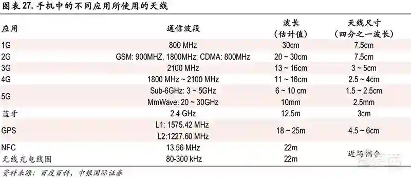 而且上文提到,除了通讯功能之外,手机的Wi-Fi、蓝牙、GPS、NFC、无线充电等功能都需要用到不同的天线。