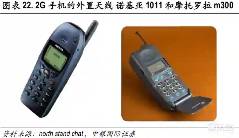20世纪90年代的2G手机天线则有两个天线单极和螺旋,只能支持单个频段。诺基亚1011和摩托罗拉M300只能支持单个频段的通信。