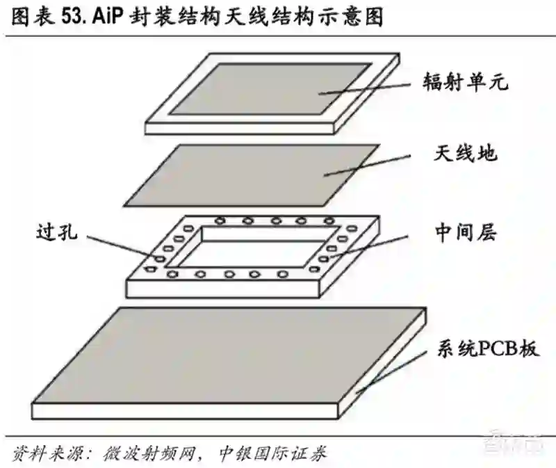 所以,小型化的毫米波天线将会很可能采用AiP(Antenna in Package)封装天线技术跟其他零件共同整合在同一个封装中。