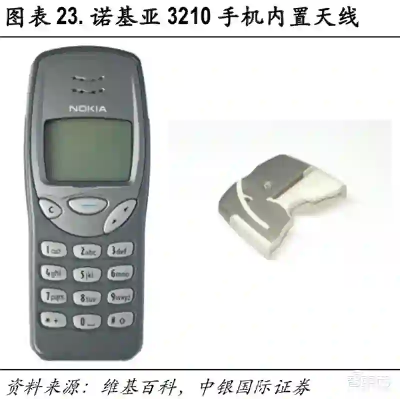 1999年诺基亚推出了Nokia 3210,是一个完全内置的天线,可以支持GSM900和GSM1800双频。