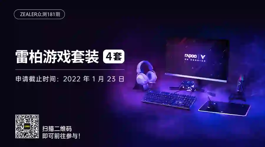ZEALER 众测大礼包上线!雷柏游戏套装来啦~内含幻彩背光游戏机械键盘、电竞游戏鼠标、RGB 游戏耳机、振动游戏手柄、游戏麦克风、无线充电鼠标垫...为爱电竞的你全套备齐!扫上方二维码或戳左下角「阅读原文」即可前往 ZEALER App 参与。