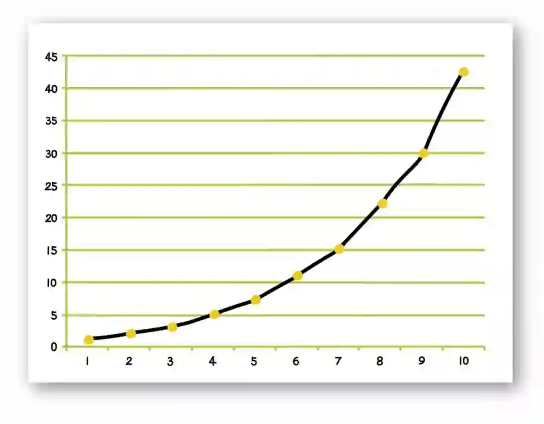 可以看出,随着n从1增加到10,分拆数P(n)随n的增加呈指数增长。