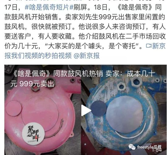 比如大家最近比较熟悉的刷屏短片《啥是佩奇》,有人就开始卖二手鼓风机的,还有趁热卖小猪佩奇的3D打印周边的