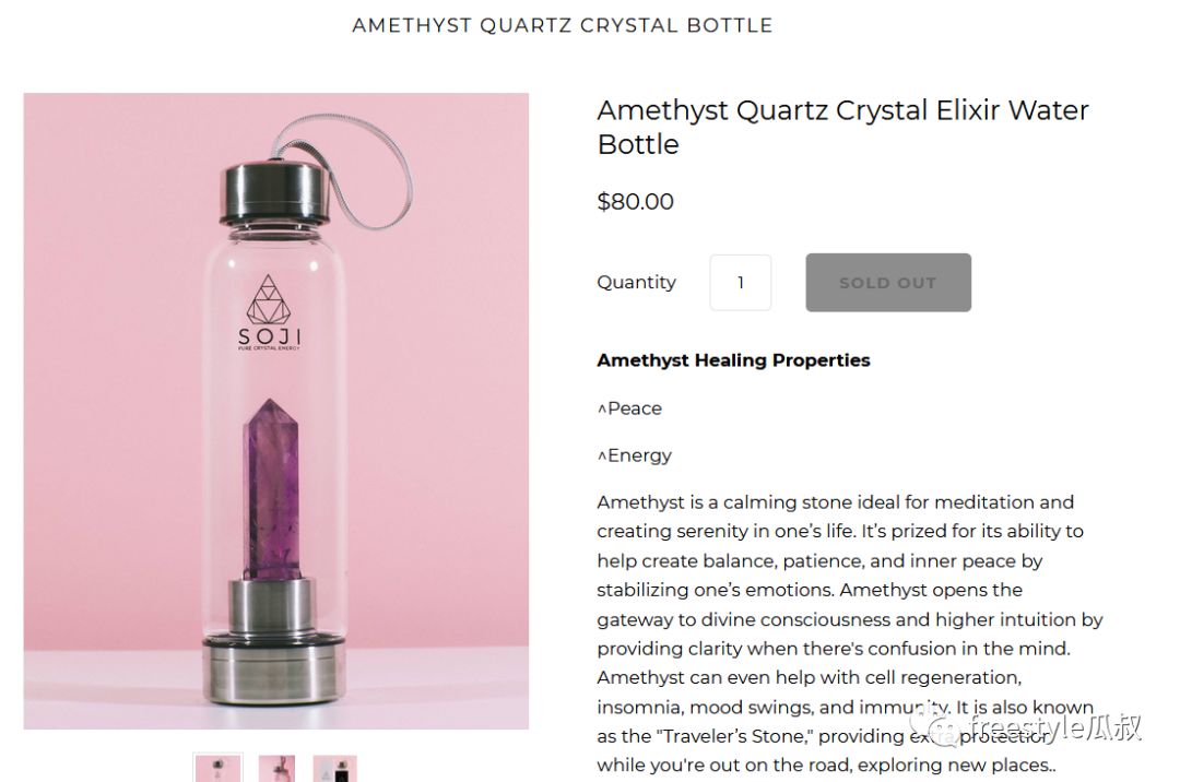 其实就是普通水瓶里面放块石英石,说是对身体健康有各种功效(此处请参见第三条认知价值)
