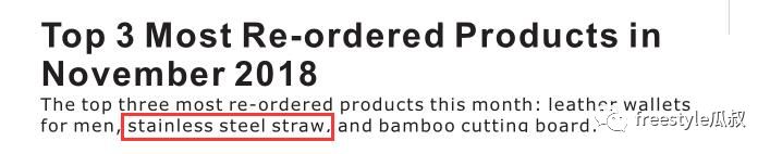 不锈钢吸管同样不是什么新品,但据调研公司报告显示,不锈钢吸管在2018年12月份仍然是复购很高的产品