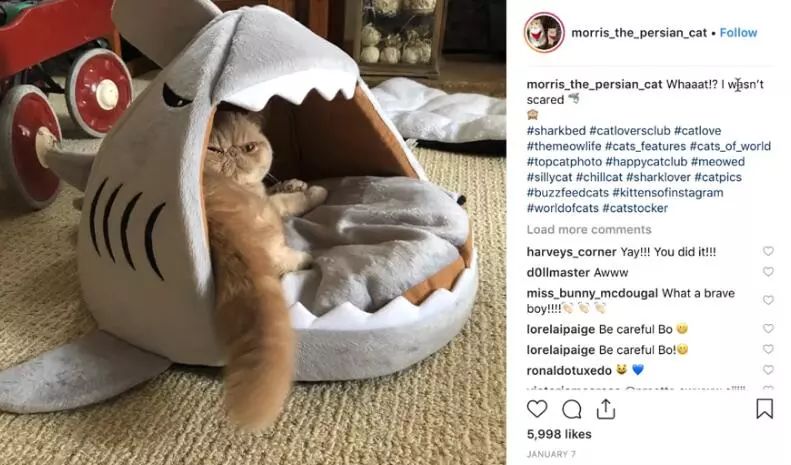 例如图中这只眼神拽拽的喵星人就是个网红,收到了近6000赞