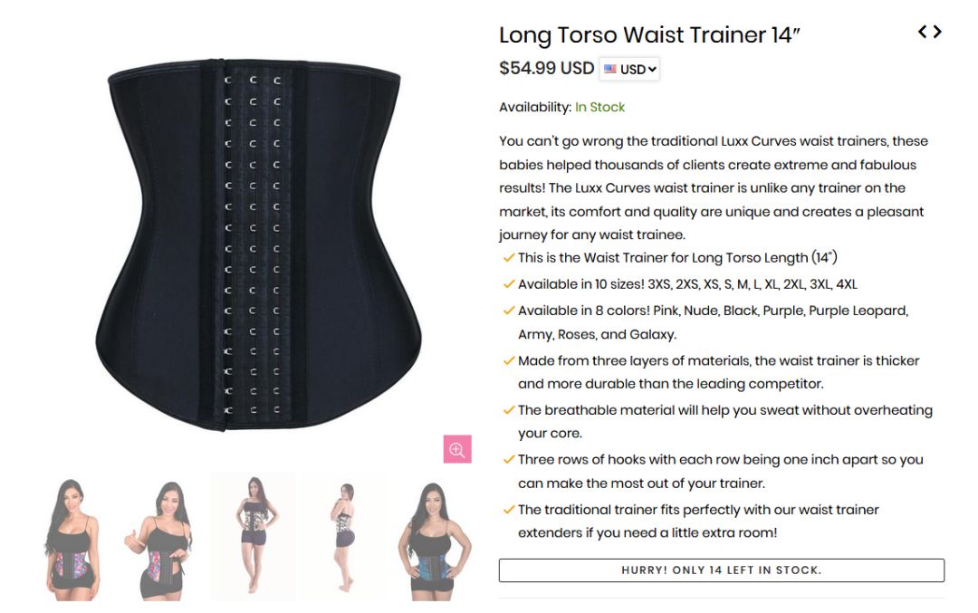 但这款产品的宣传点,不是“束腰”这么简单,而是“瘦腰训练器” (Waist trainer)