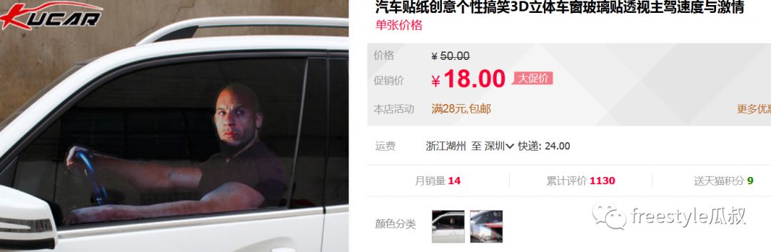 在追影视热点上,淘宝大神的脑洞我是服气的:《速度与激情》火了,有人出范·迪塞尔车窗贴;《人民的名义》火了,又有人出了达康书记车贴,居然还卖了上千单(吓得瓜叔都坐地上了)