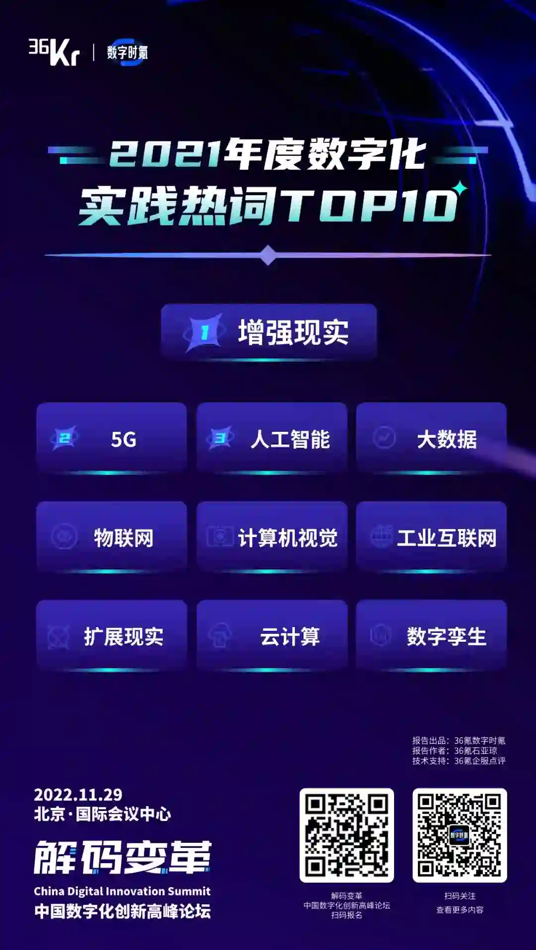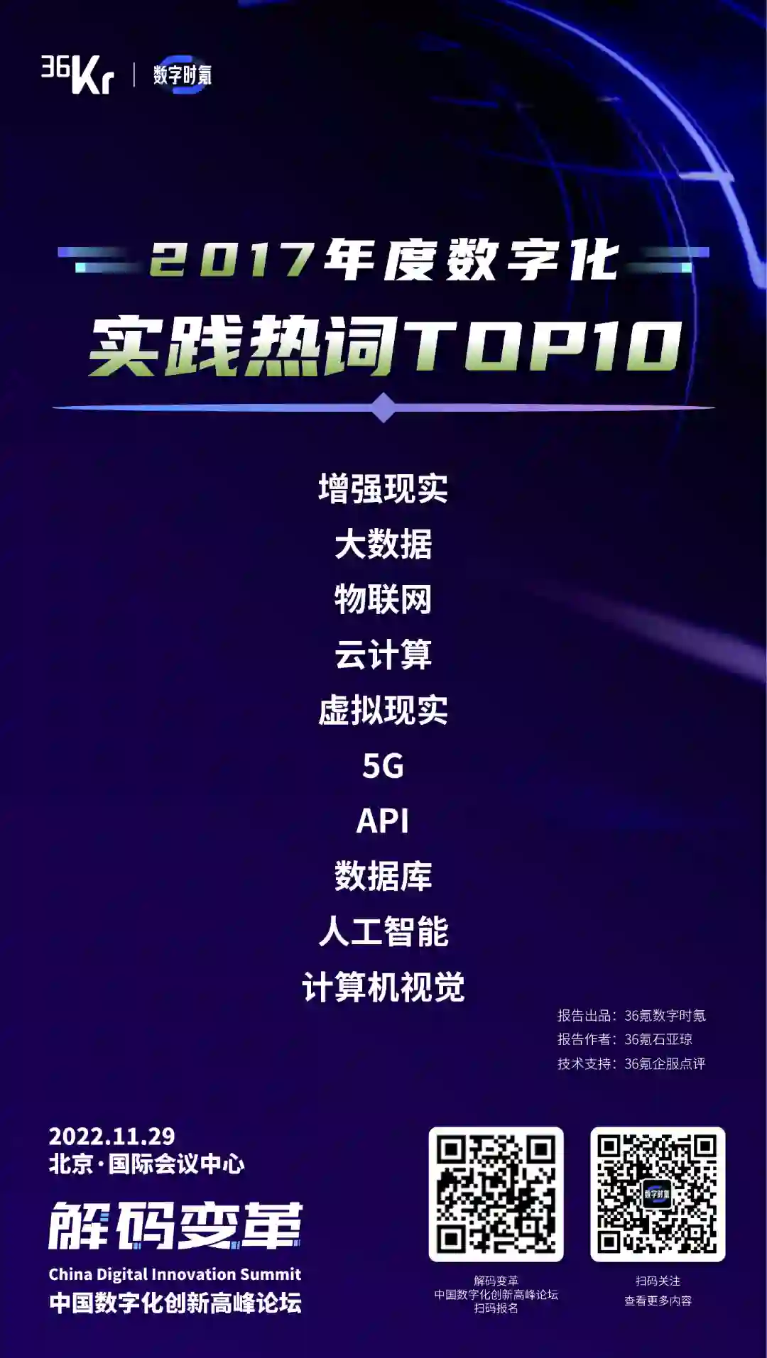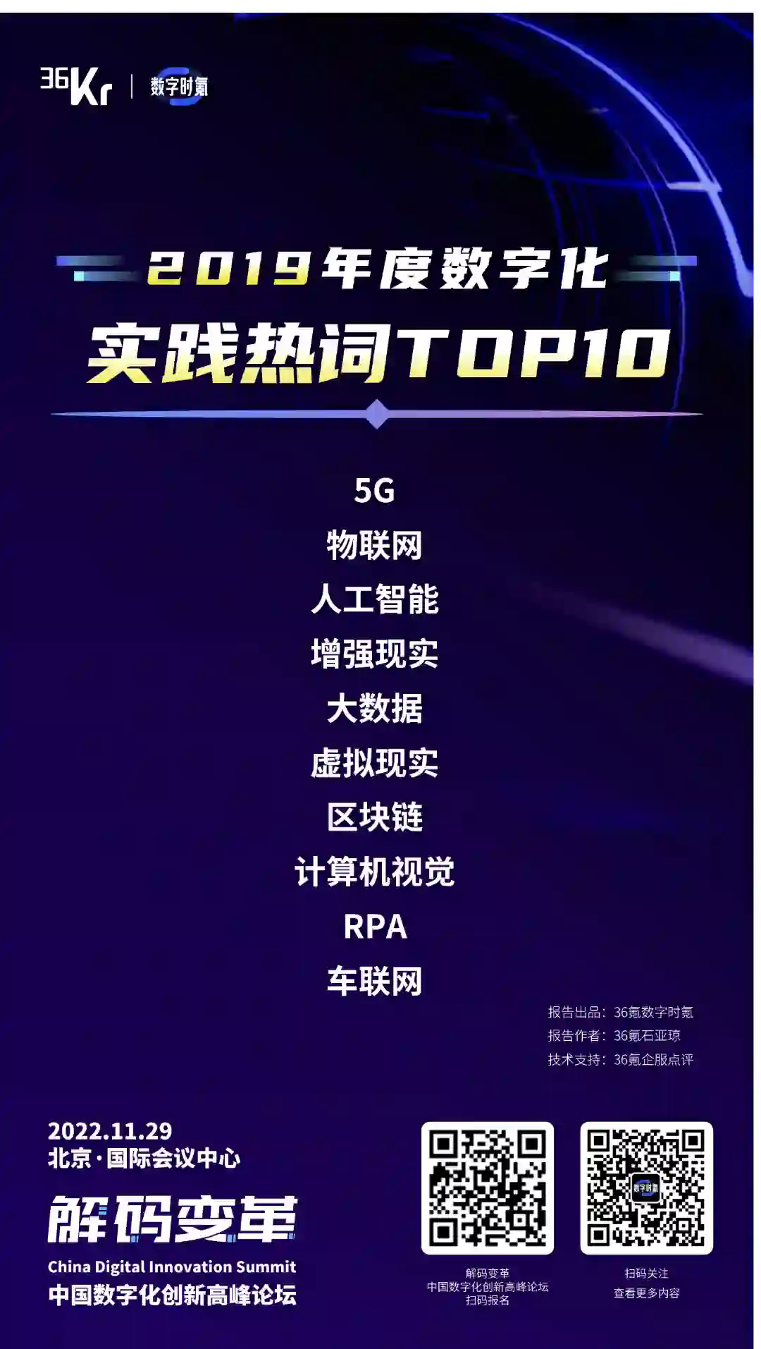 36氪特色的答案是什么?我们设想过多种描摹数字化的方案,并最后选择了现在的这个方案 —— “数字化实践热词”。我们希望以一种观察者的感性视角,结合理性的技术统计,尽可能还原中国数字化的状态。