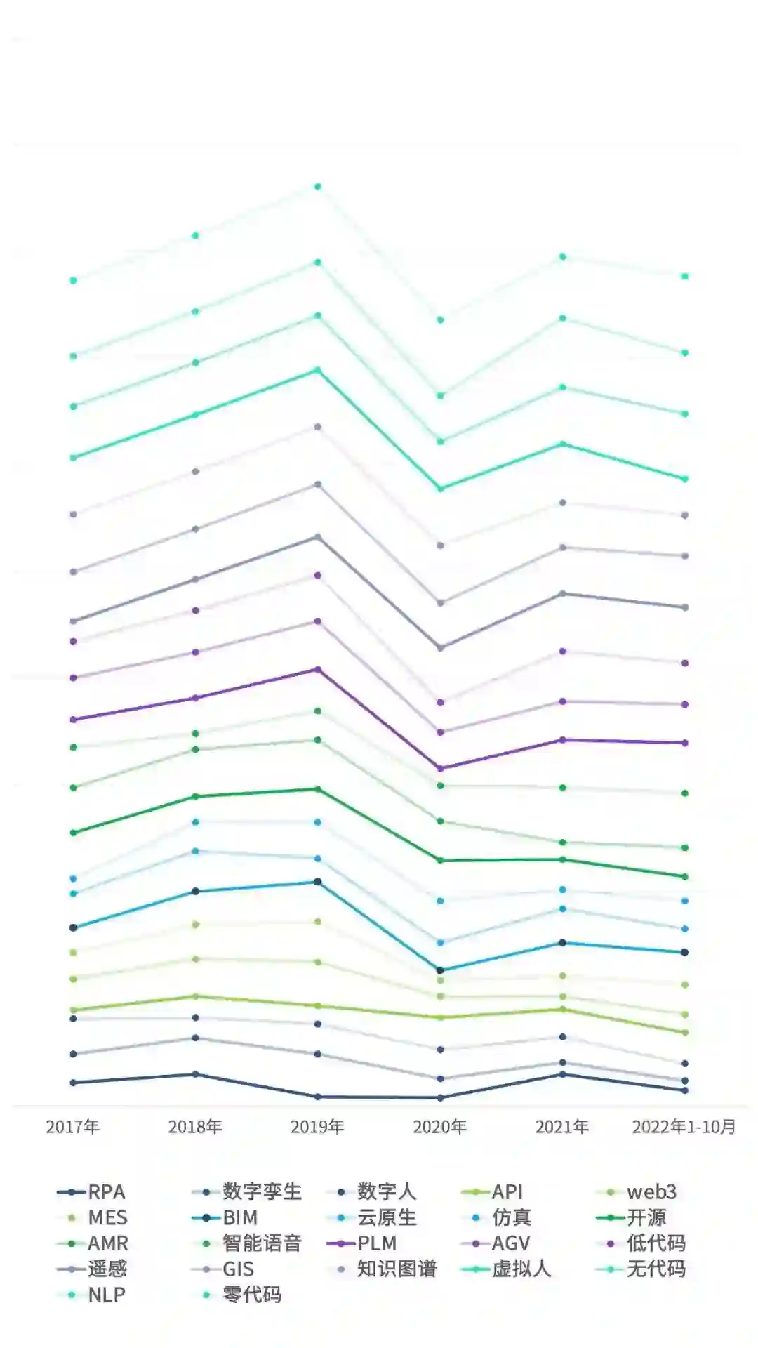 某种程度上,这些词汇出现的次数反映了中国数字化实践者过去十年是如何理解数字化并落地的。