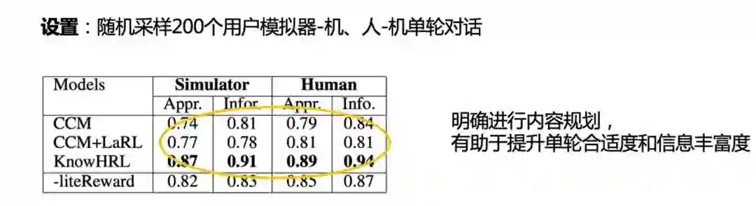 通过两个子任务的划分,以及三层的策略模型,KnowHRL在对话过程中获得可解释的离散对话状态,模型得以主动规划对话内容,进而提升连贯性。