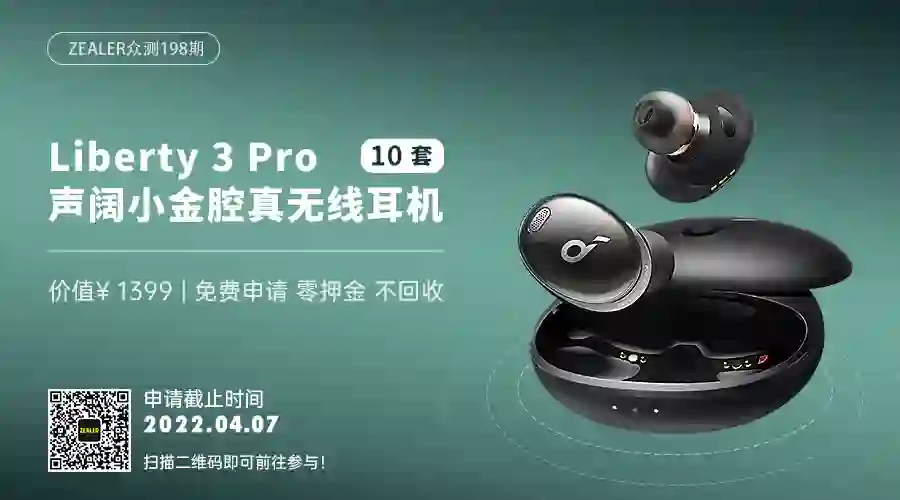声阔全球开箱征集令来了!Liberty 3 Pro 声阔小金腔上线 ZEALER 众测。吊打一众「Pro」的声阔旗舰新机,妙在何处?专利同轴圈铁架构开创者带来 HiFi 级音质、免设置全场景自适应主动降噪、双设备连接随时切换、32 小时超强续航...扫上方二维码或戳左下角「阅读原文」即可前往参与。