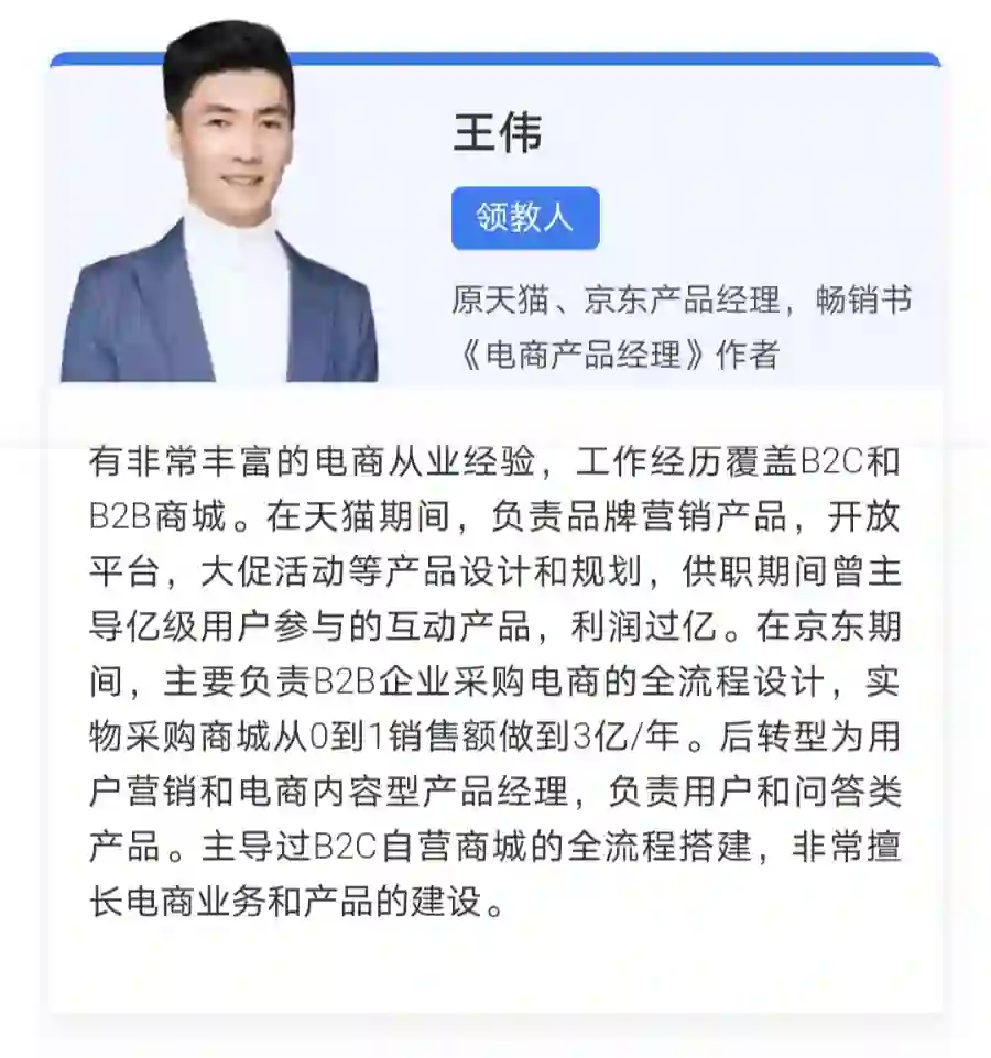 不仅如此,王伟老师出身大厂电商,刘志远老师一直在明星创业公司当产品总监。我们也因此得以结合大厂和创业公司的电商架构,打造出一套真正市场通用的电商能力模型!