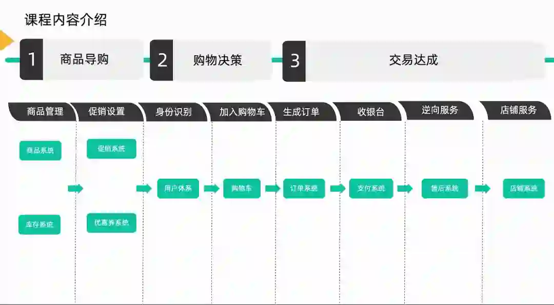所有模式的电商产品,都是在基础架构上的“业务包装”。课程将带我们系统掌握完整电商前后台产品的底层逻辑和架构,这样未来在面对具体业务场景时也能真正游刃有余。