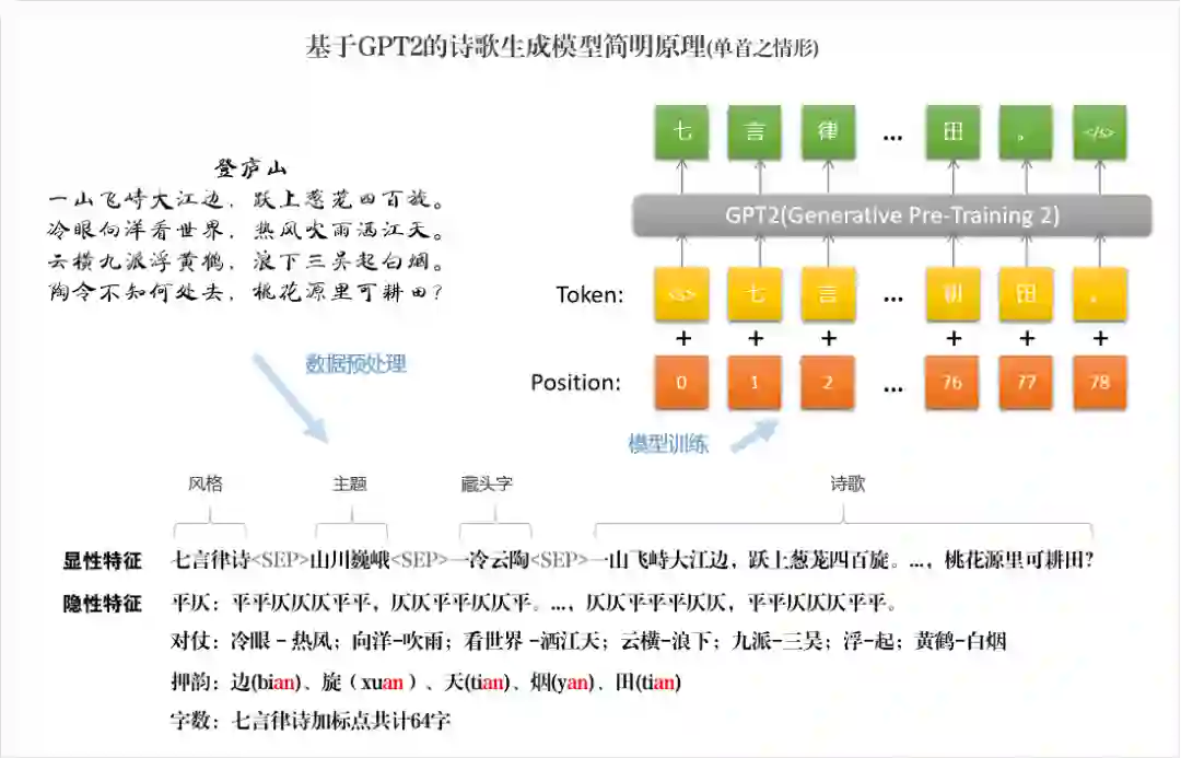 通过大量诗歌语料,诗歌生成模型能学习到任一诗句中相邻的字词之间的依赖关系