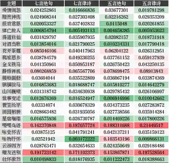 经过笔者的仔细甄别,共甄别出23个热门诗歌题材,分别是