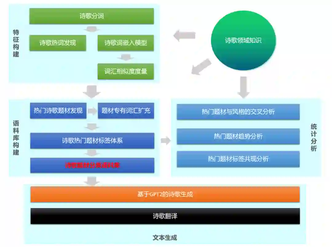 所谓挖掘,通常带有“发现、寻找、归纳、提炼”等内涵,既然需要去发现和提炼,那么,所要找寻的内容往往都不是显而易见的,而是“隐蔽”和“藏匿”于文本之中,或者是人无法直接在大范围内发现和归纳出来的。如果要抽丝剥茧,需要结合领域知识(如文中的诗歌常识),运用多种分析手段(如文中的各类NLU和NLG方法),有时甚至需要逆向思维(如文中的诗歌生成),且各类分析最好是一个前后相继、互为补充有机整体,这样才能以最高的效率来完成文本数据的探索任务。