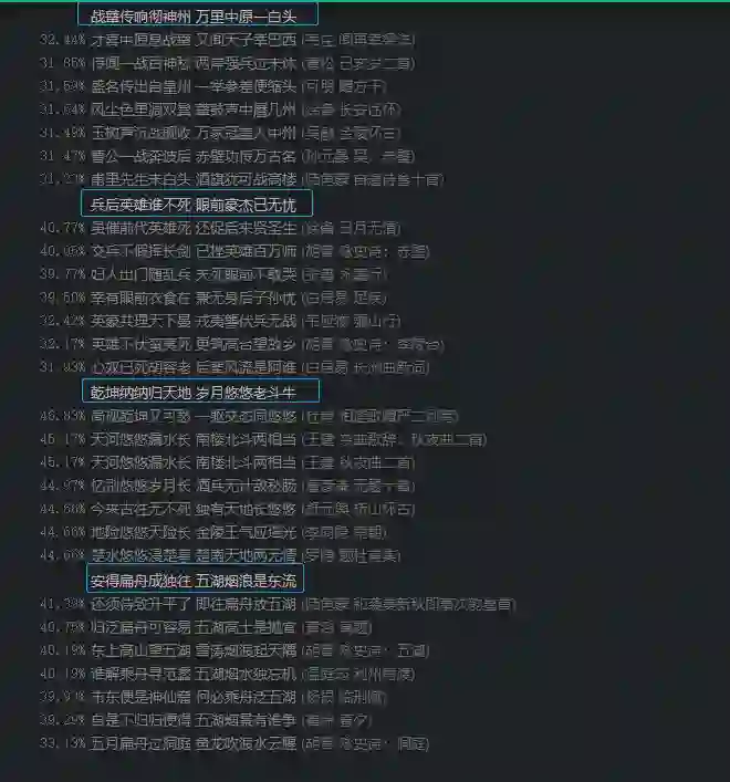 有了前面的词嵌入模型和语义相关度做“铺垫”,后续的热门诗歌题材发现就水到渠成了~