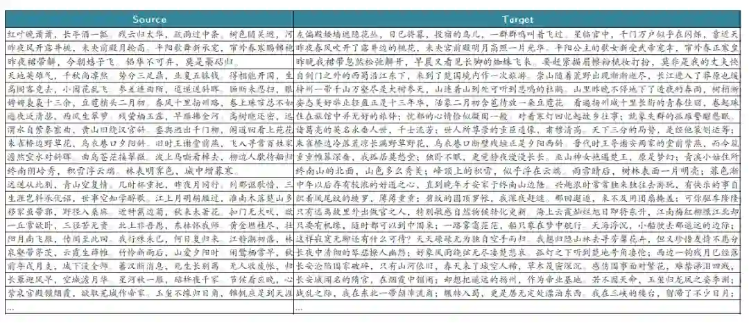 考虑到古现代汉语存在大量词汇方面的语义延续性,不像中英互译这样,源语句和目标语句之间的语义和语法结构差异极大,它们会有很多共享词汇,所以训练的语料数量可以适当少些。诗歌翻译模型会从大量的翻译语句对中学习到它们之间的语义对应关系,而且是以较为流畅(较理想的情况下)的形式进行输出