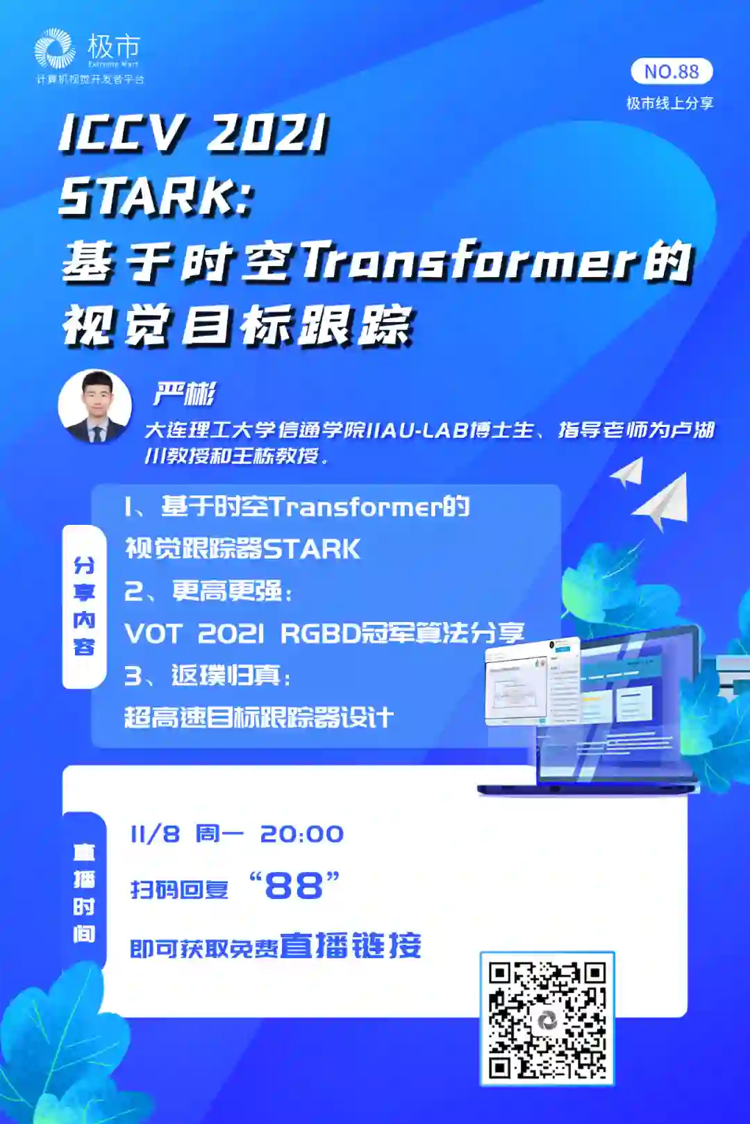 并将介绍他们在该项工作基础上的两项拓展工作,这两项工作分别在精度和速度上取得了新的突破:其中一项工作获得了今年VOT RGBD Challenge的冠军,另一项工作则在性能超越DiMP50的情况下将GPU端推理速度提升到了200FPS以上。