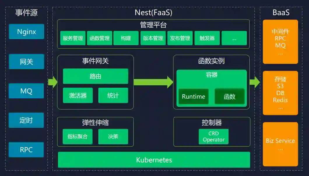 Nest 为面向 FaaS 的架构设计,如下图所示: