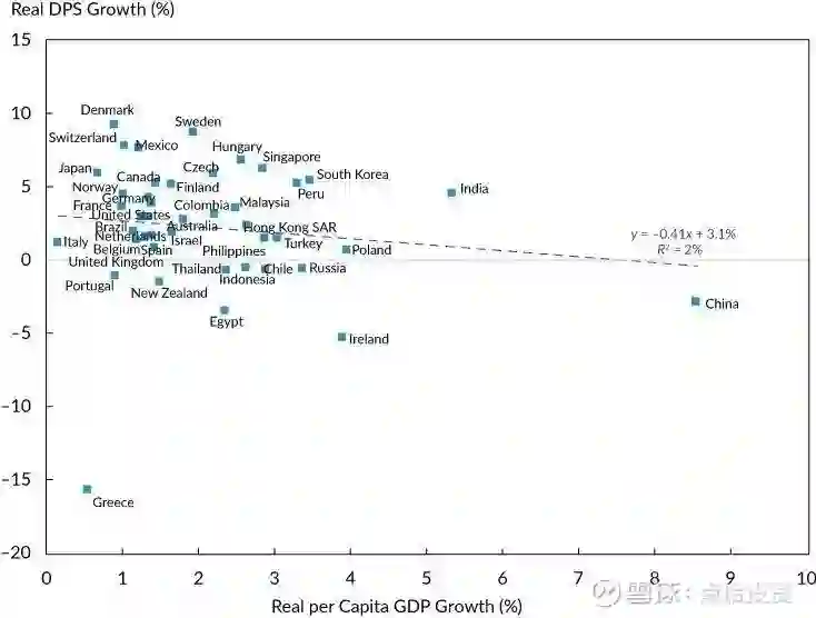 经济增长对于所有人来说什么许多国家股票持有人并没有完全享受到经济增长的红利呢?事实上,我们已经在开头部分对股票市场回报率做了归因分析。全球股市回报率主要来自企业分红。如果经济增长最终没有体现在企业分红的增长,那么大概率就无法给持有人带来回报。