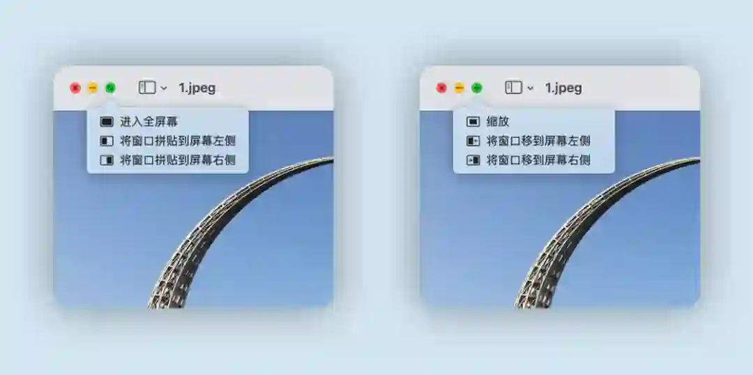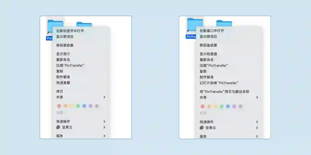 右键对比,左侧为未按 Option 键,右侧为按 Option 键