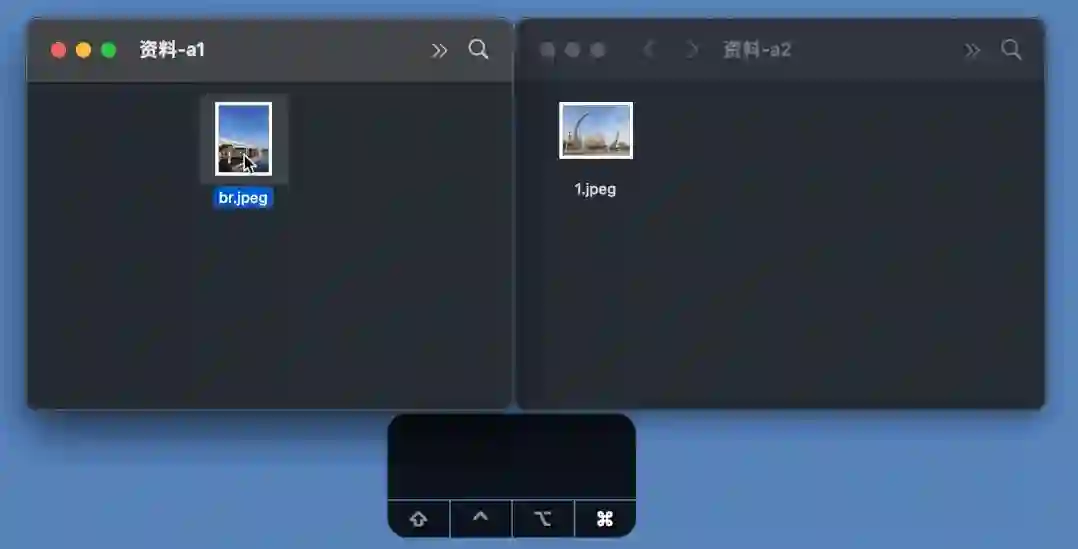 简单来说就是,打开两个访达的窗口,按住 Option,用鼠标左键把一个文件从当前文件夹中拖动到目的文件夹中即可;如果鼠标只是在当前文件夹中进行的拖动,那么结果就是在原地快速地制作了一个选中文件的副本。