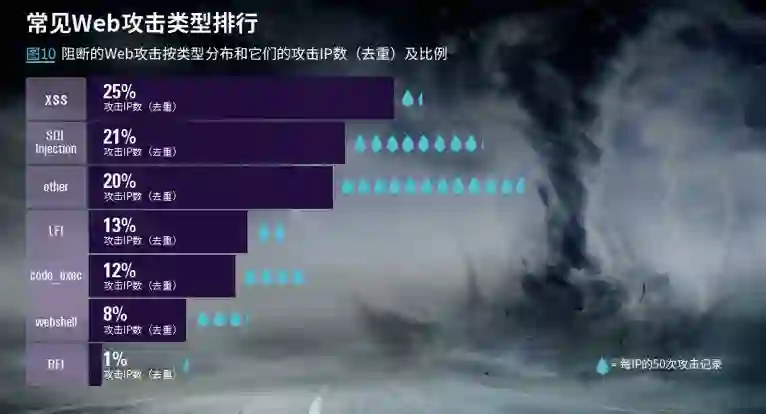 2018 上半年,阿里云检测并阻止了五千亿次以上的 Web 攻击。平均每天有 30 亿次攻击,这些攻击来自 200 万个以上的唯一 IP 地址。阿里云 WAF 阻止的两个最流行的攻击是 XSS 和 SQL 注入。