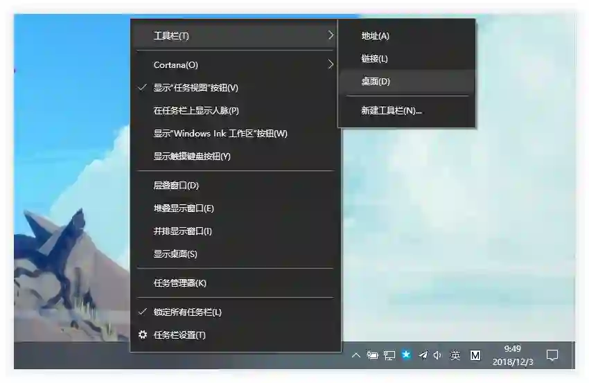Windows 10 下方的任务栏默认包含几个主要部分——开始按钮、搜索框、软件栏、状态栏、时间。在软件栏和状态栏之间,我们还可以自定义添加「工具栏」。今天要讲的文件暂存就是靠工具栏实现的。