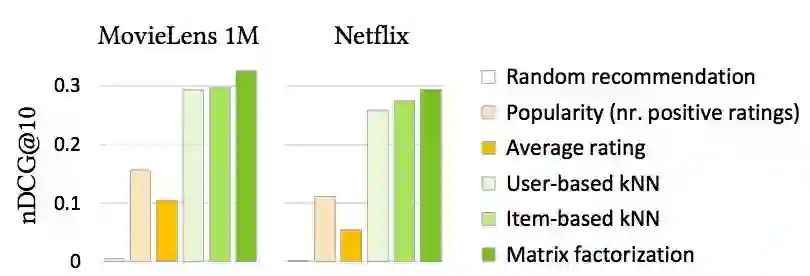 使用 IR 方法论和指标用于推荐系统的评估在近年来发展迅速,已成为该领域中的常用实践方法,其将理解推荐看成排序任务 [14]。然而 IR 指标已被发现在推荐受欢迎条目(即很多人知道、喜欢、评分或交互的条目 [4,21,35])的奖励算法中有很强的偏见。同时,当前最佳的推荐算法也被发现在推荐多数人喜欢的条目时存在显而易见的偏见 [21]。人们可能自然地对常用的实验设置和最佳算法真实输出的可靠性提出质疑。