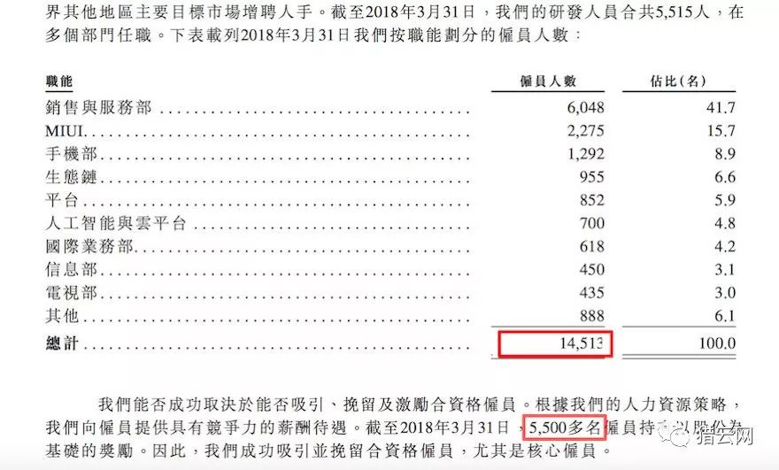 根据招股书显示的内容来看,截止2018年3月31日,小米总计员工14513人,其中,5500多名小米员工将拥有公司期权鼓励。难怪网友戏称,没有对象的朋友,是时候可以考虑小米员工了。