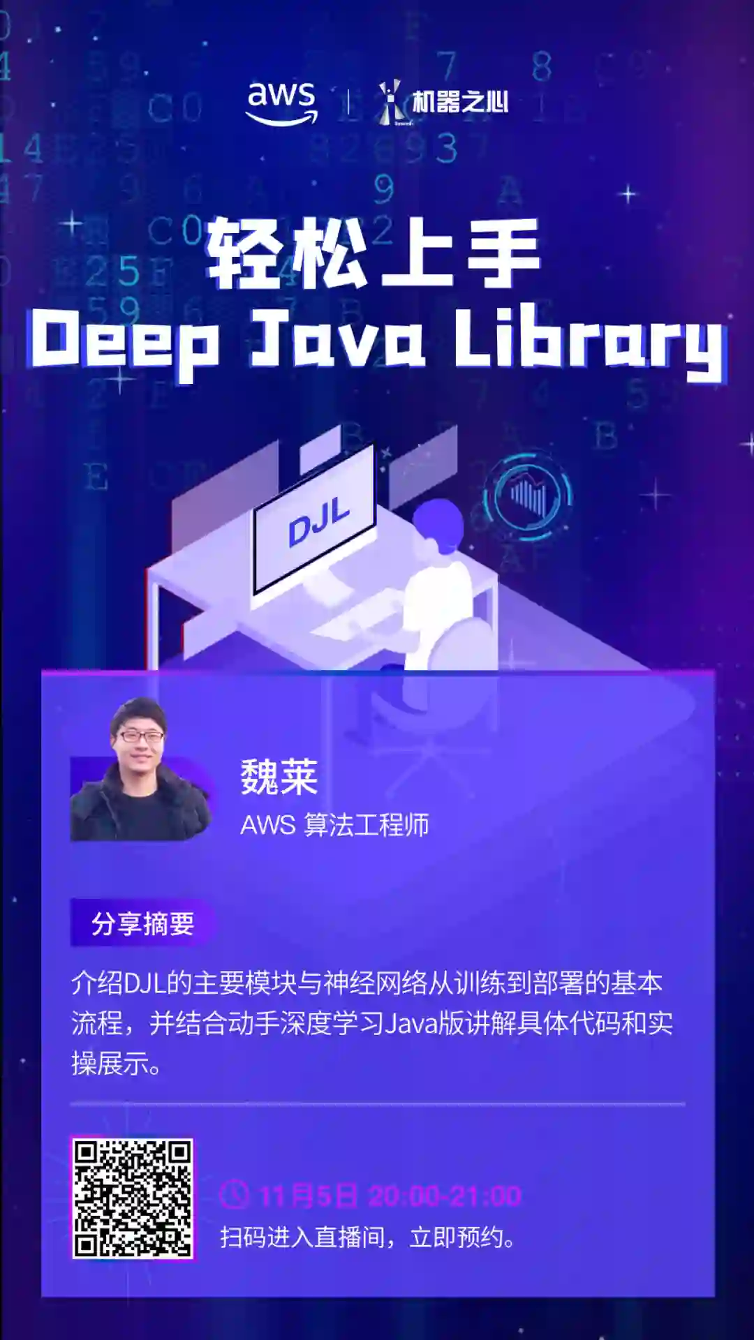 11月5日,AWS AI算法工程师魏莱将带来第三期分享《轻松上手Deep Java Library》。第三期分享主要介绍: