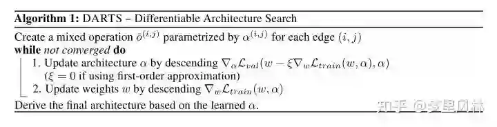 所以这是一个模型权重w和架构权重的α的双重优化问题,通过交替迭代优化来求解: