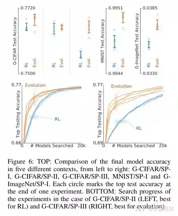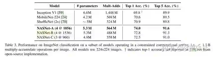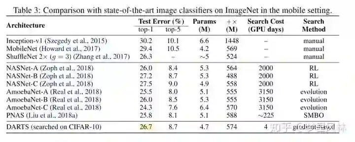 把CIFAR上搜的这个模型在ImageNet上重新train,效果还不错,说明这个架构非常transferable