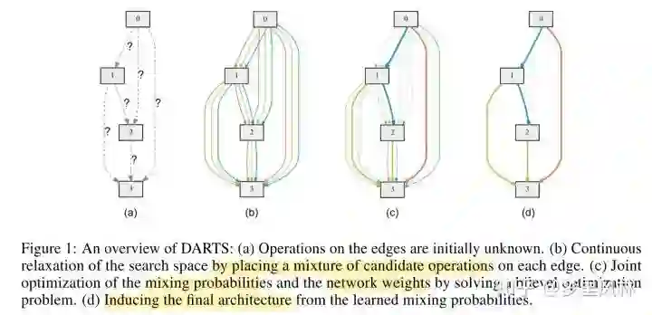 简介:将架构搜索表达为一个可微过程,用梯度下降来优化,搜索速度很快,效果很好,并且是开源的。
