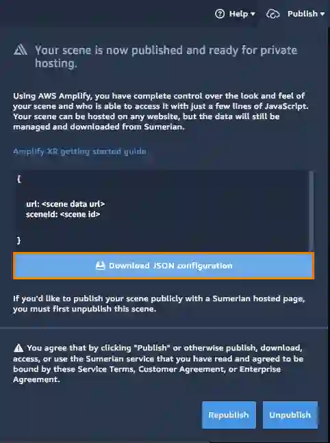 现在单击下载JSON配置按钮以下载将用于在Amazon Amplify中配置您的场景的场景配置JSON: