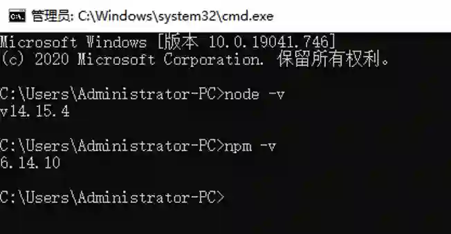 通过在终端/控制台窗口中运行node -v 和npm -v,验证您至少运行的是 Node.js版本12.x以及npm版本6.x或更高版本。我这里node版本14.15.4和npm版本6.14.10。