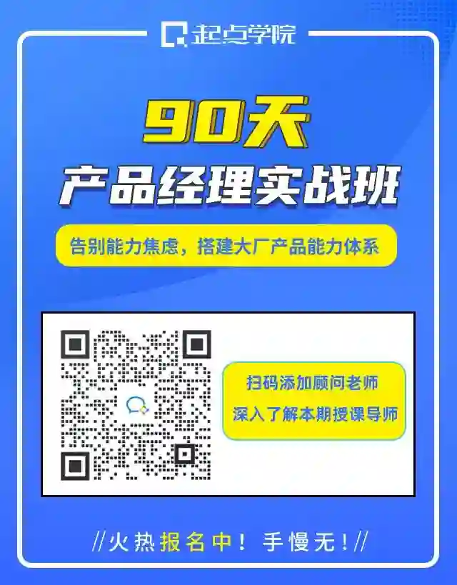 《90天产品经理实战班》是由腾讯课堂&起点课堂联合打造的课程,经过人人都是产品经理社区10年沉淀,课研部门和大厂导师几十次精心打磨,经受过市场多次严苛检验,专为产品人打造的培养系统思维的一门能力进阶课。