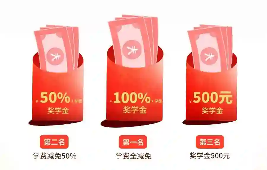 最后,报名的同学甚至还有机会收获丰厚的奖学金,第一名学费全免哦~